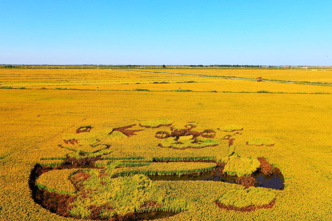你可能見過各種繪畫形式,但你一定沒見過稻為筆,田為畫布,風(fēng)奏樂,蒼穹下的奇特畫卷。一片金燦燦的稻田,混合著各種作物的色彩,一幅幅造型各異的的美麗畫卷,在這個收獲的季節(jié)格外的格外的生機勃勃。