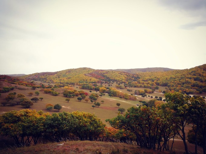 蛤蟆壩位于河北與內(nèi)蒙古交界的克旗烏蘭布統(tǒng)境內(nèi),是一塊高起的平緩坡地,三邊是“溝”或低地。 --這里地貌獨(dú)特,秋天景色絢麗多彩,漫山遍野的紅葉,流金溢丹,簇簇紅葉中,明黃的白樺葉融合在一起,匯成一幅幅渾然天成的圖畫。 --山坡下,溝膛里,依山就勢(shì),散落著幾十間茅屋草舍和新蓋的紅磚瓦房。雞鳴犬吠,炊煙裊裊,很有一種古樸原始的田園風(fēng)味。 --山頂是一片白樺樹(shù),山腰是一塊塊不規(guī)則的梯田,山麓是三三兩兩姿態(tài)優(yōu)美的老榆樹(shù),樹(shù)木間隙是木柵圍成的或圓形或矩形的羊圈、牛欄。 --在攝影人眼中,這是一個(gè)百拍不厭、常拍常新的攝影創(chuàng)作“寶地”。