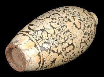 賦予創(chuàng)造性的磁州窯匠,在宋、金、元時代共創(chuàng)造了三十多種裝飾陶瓷技法,如:“白地刻劃”、“鐵銹花”、“珍珠地”、“白地褐彩”、“白剔花”、“黑釉剔花”、“芘紋刻劃”等等。