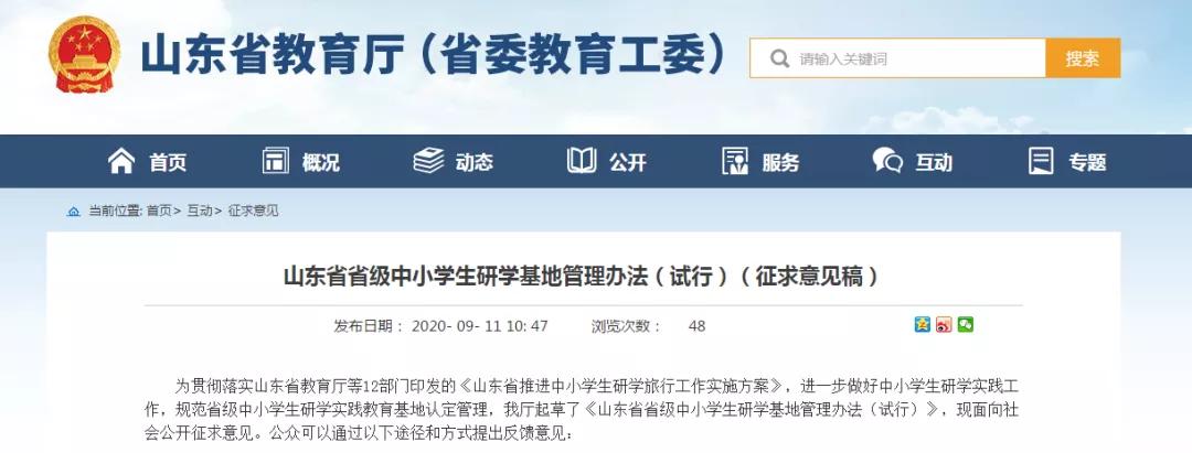 山東省省級(jí)中小學(xué)生研學(xué)基地管理辦法(試行)