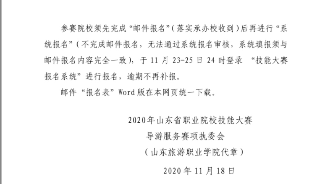 首頁 >> 資訊平臺 >> 劉寶平工作室__Mr. Liu Stu >> 劉老師課堂 >> 大賽指導(dǎo) >> 導(dǎo)游大賽 >> 2020省賽 >> 文件