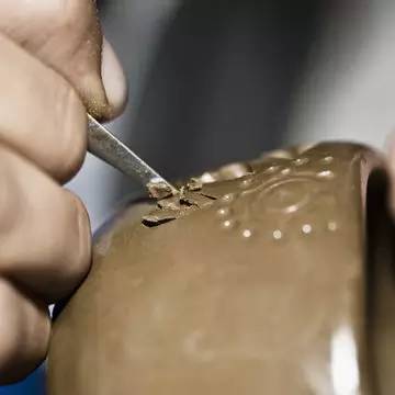 歷經(jīng)了揉泥、拉胚、晾胚、修胚、雕刻、素燒、多次施釉、釉燒、火照、開窯等幾十道工序和數(shù)十個技術(shù)環(huán)節(jié)點。