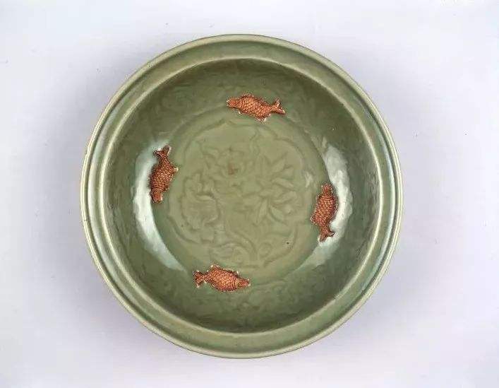 龍泉窯青釉塑貼四魚紋洗