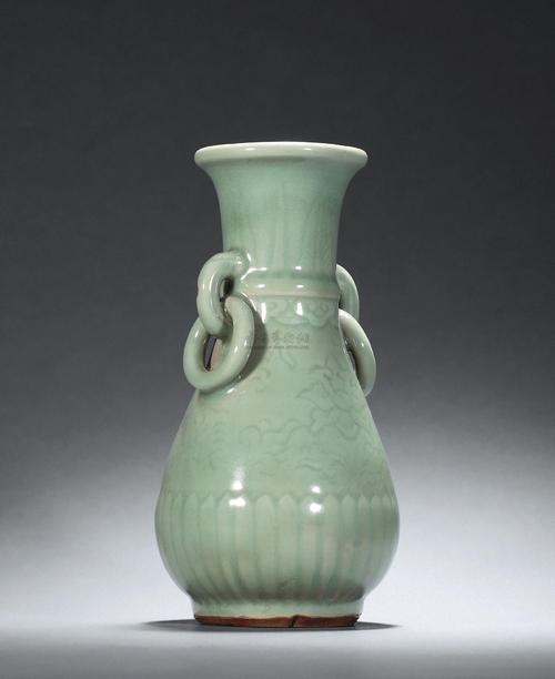 龍泉窯青釉貫耳弦紋瓶