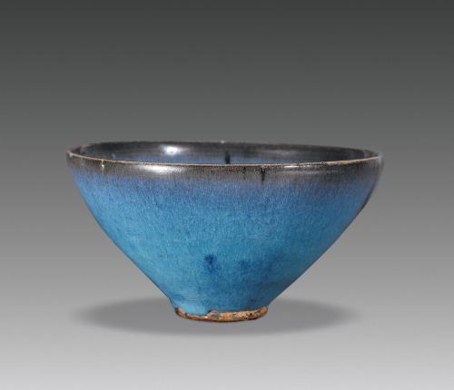 器內(nèi)底釉中有“蚯蚓走泥紋”的曲線,這是宋鈞瓷特征之一。