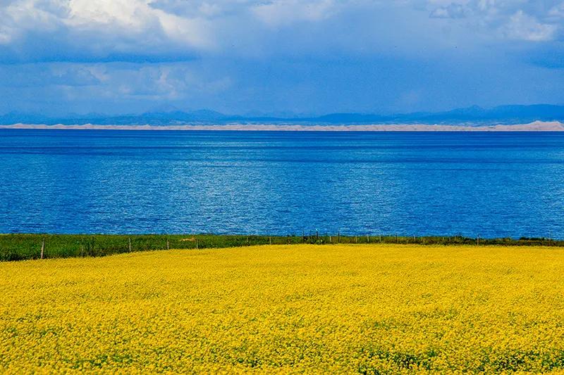 青海湖在不同的季節(jié)里,景色迥然不同。夏秋季節(jié),當(dāng)四周巍巍的群山和西岸遼闊的草原披上綠裝的時候,青海湖畔山清水秀,天高氣爽,景色十分綺麗。