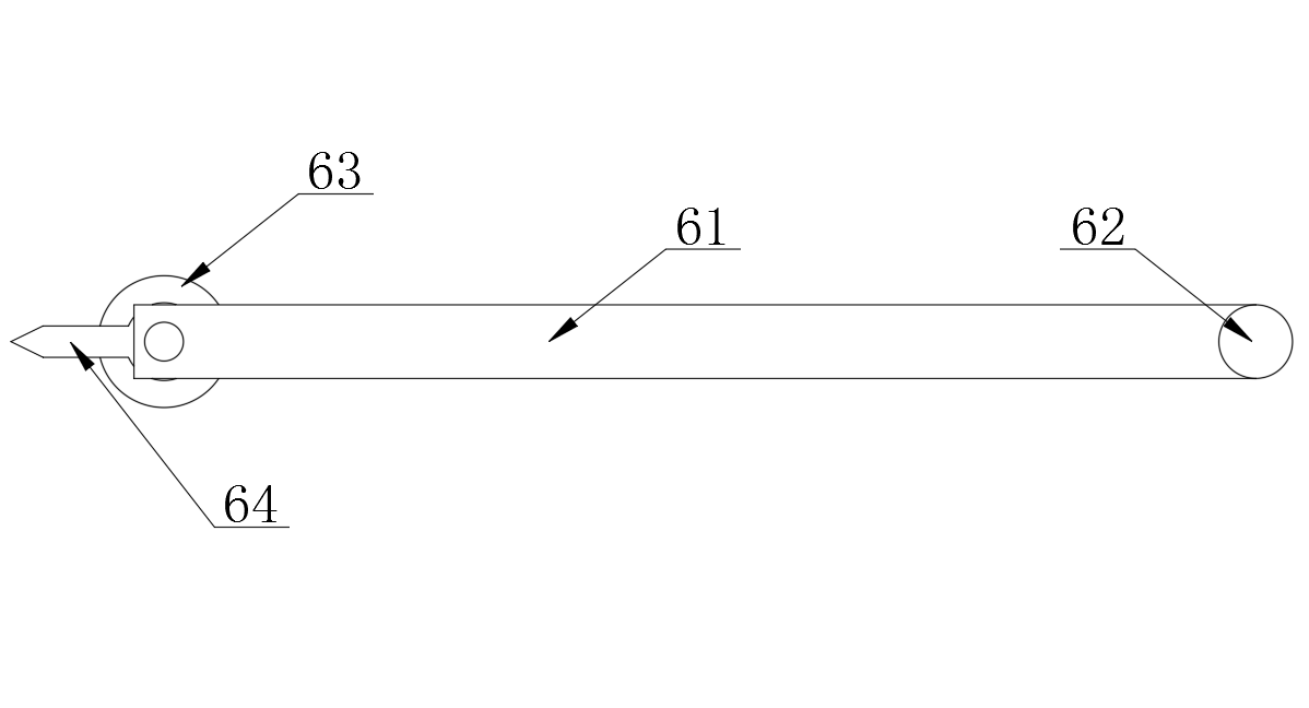 所述指向件(6)包括連接桿(61),所述連接桿(61)一端設有定位柱(62),所述連接桿(61)另一端設有固定吸盤(63),所述固定吸盤(63)與連接桿(61)之間設有指示標(64),所述定位柱(62)中部開設有轉(zhuǎn)向槽(65),所述連接桿(61)與定位柱(62)連接處設有第一通孔(66),所述連接桿(61)另一端固定設有固定柱(67),所述固定柱(67)遠離連接桿(61)一端與固定吸盤(63)固定連接,所述指示標(64)與固定柱(67)連接處開設有第二通孔(68)。