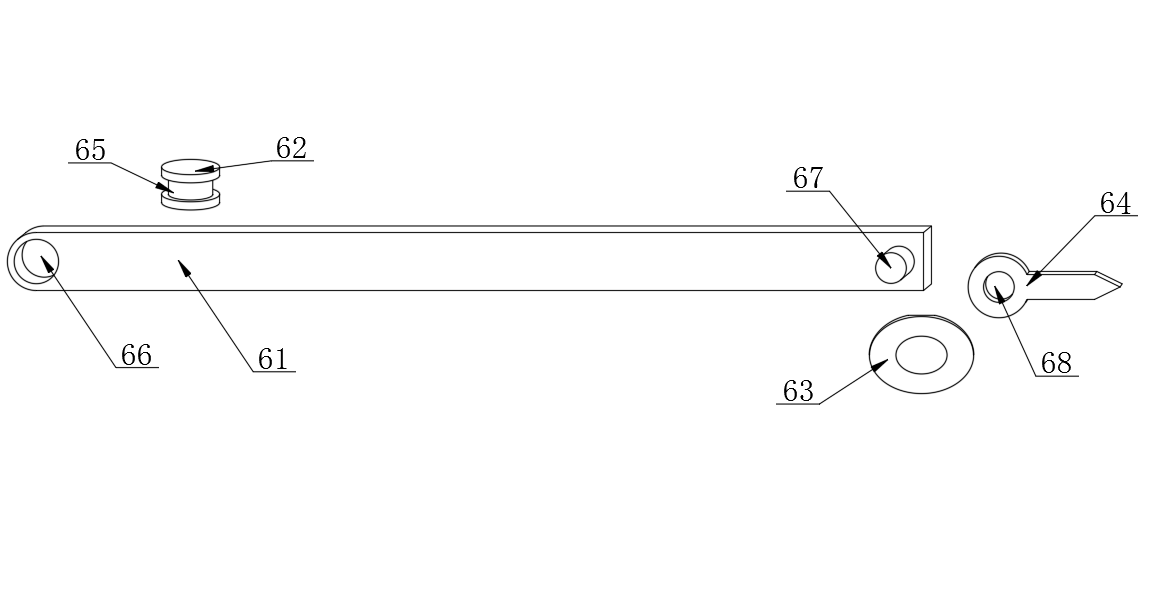 所述指向件6包括連接桿61,所述連接桿61一端設有定位柱62,所述連接桿61另一端設有固定吸盤63,所述固定吸盤63與連接桿61之間設有指示標64,所述定位柱62中部開設有轉(zhuǎn)向槽65,所述連接桿61與定位柱62連接處設有第一通孔66,所述連接桿61另一端固定設有固定柱67,所述固定柱67遠離連接桿61一端與固定吸盤63固定連接,所述指示標64與固定柱67連接處開設有第二通孔68。