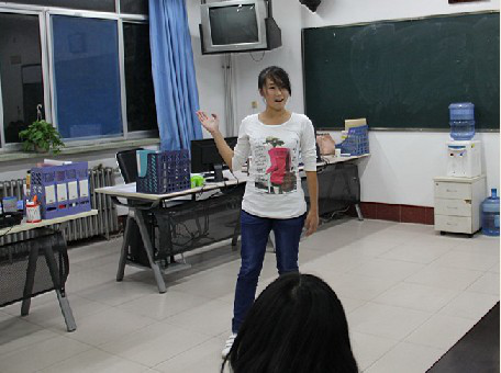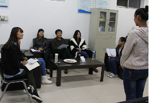 同學們在聽凱文旅游英語俱樂部的介紹