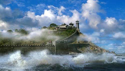 大家好!歡迎你們光臨蓬萊。中國(guó)有句古語(yǔ):“有朋自遠(yuǎn)方來(lái),不亦樂(lè)乎?”中國(guó)自古便有好客的傳統(tǒng),蓬萊人更以熱情著稱。今天,由我為大家做導(dǎo)游服務(wù)。大家可以叫我小牛。希望通過(guò)我的認(rèn)真努力和您的友好合作,我們共同度過(guò)一段愉快、美好的時(shí)光!蓬萊市位于山東半島最北端,屬于煙臺(tái)的一個(gè)縣級(jí)市,是煙臺(tái)蘋果的主要產(chǎn)地之一,水產(chǎn)品產(chǎn)量居煙臺(tái)市第一,黃金產(chǎn)量居全國(guó)第五。蓬萊是“山海名幫”,千百年來(lái)一直被譽(yù)為“仙境”。這可能與“海市蜃樓”有直接關(guān)系?!昂J序讟恰笔桥钊R十大仙景之一,當(dāng)?shù)厝怂追Q“神山現(xiàn)世”,一般出現(xiàn)在春夏兩季,不知道各位是否有這份幸運(yùn)?!