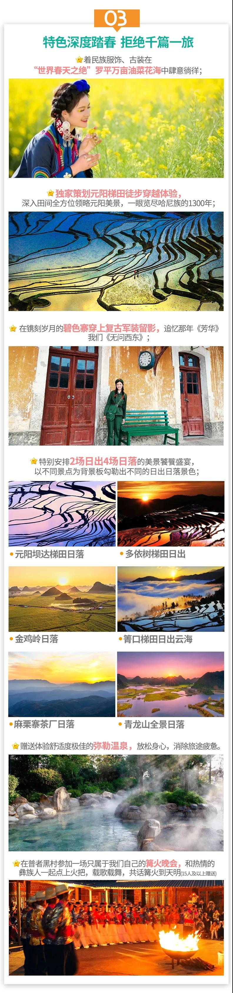 元陽梯田+羅平油菜花+世外桃源壩美+普者黑+蒙自碧色寨+彌勒溫泉+東風(fēng)韻+九龍瀑布+建水古城云南踏春