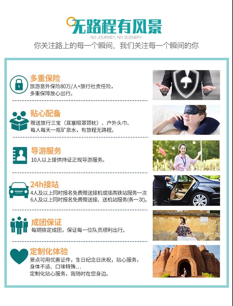 (6)4人及以上免費(fèi)贈送接機(jī)或接高鐵站服務(wù)(單程一趟);6人及以上同時(shí)報(bào)名該線路,免費(fèi)贈送接、送機(jī)站服務(wù)(各一趟)。