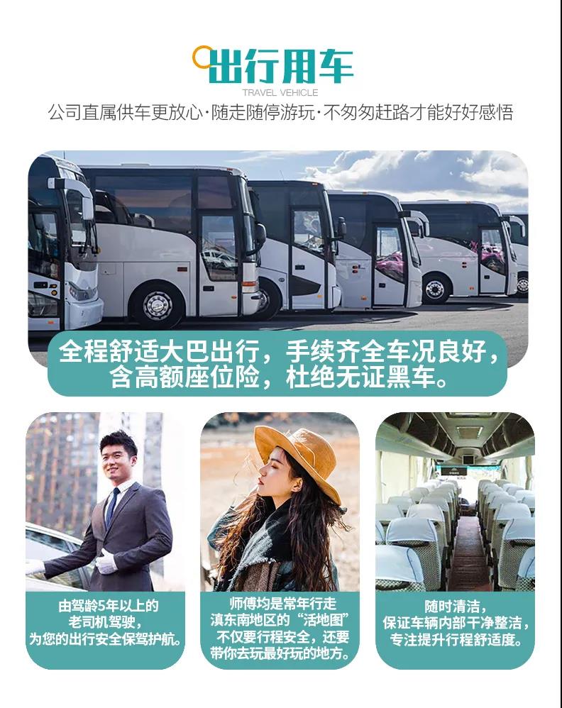 接站服務(wù):3人及以上同時(shí)報(bào)名同一航班/車次,贈送昆明市區(qū)接機(jī)/接火車服務(wù)一次。接機(jī)/接火車的工作人員會在您出發(fā)日期前一天21:30之前向您推送消息并與您聯(lián)系,如果超過時(shí)間沒有接到任何通知,請及時(shí)與導(dǎo)游或報(bào)名處聯(lián)系。(節(jié)假日用車人數(shù)較多情況下客人等待時(shí)間可能會延長)