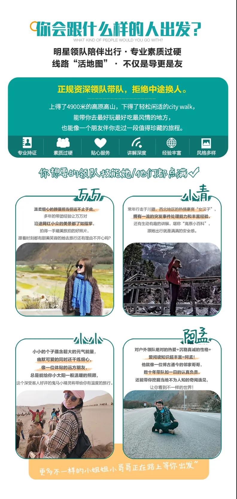 私人訂制:我們業(yè)務(wù)范圍囊括了全國各大城市,川西、西北、東北,在路上永遠(yuǎn)有我們的身影。我們將為每一個(gè)有定制需求的你策劃出獨(dú)屬于自己的完美旅行。