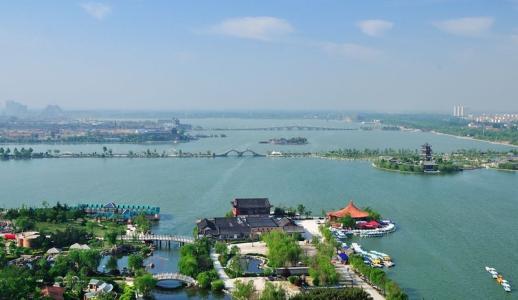 東昌湖始掘于宋熙寧三年,筑城取土而成,城外自然成河,恰似一條美麗的玉帶環(huán)繞古城。它與杭州西湖、南京莫愁湖并譽為我國三大美女湖。東昌湖水域面積6.3平方公里,與杭州西湖相當(dāng),是南京莫愁湖的18倍;平均水深3米,蓄水量是杭州西湖的2倍。