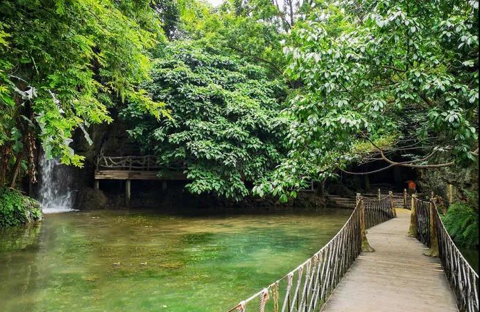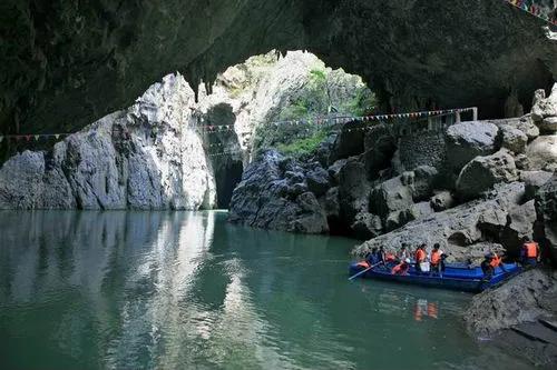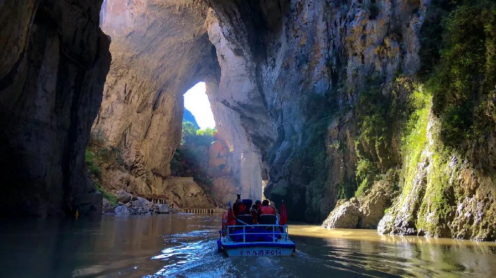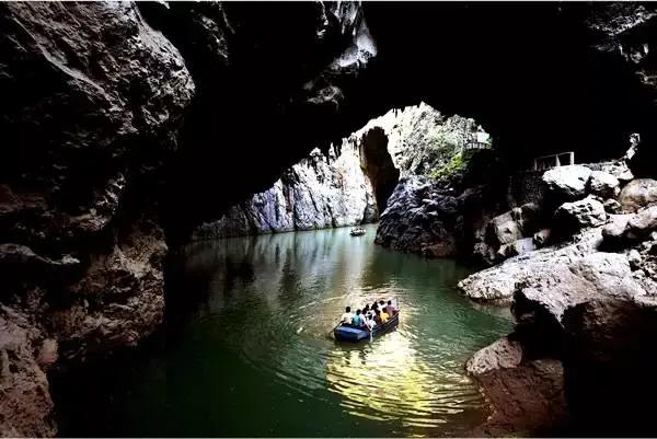 早餐后,乘車(chē)約2小時(shí)抵達(dá)【九洞天景區(qū)】(游覽時(shí)間約3-4小時(shí))景區(qū)生態(tài)景觀(guān)秀美、溝壑縱橫、植 被發(fā)育、伏流明暗交替,洞洞相連,組合成集溶洞、伏流、天窗、天坑、峽谷、天生橋、懸崖、絕壁、峰叢幽谷等為一體的雄奇瑰麗的巖溶大觀(guān)。在這一段長(zhǎng)約2公里的六沖河河道上,箱形切割頂板 多處塌陷,形成了多個(gè)形狀、大小各異的天窗、天坑,是已發(fā)現(xiàn)的天窗天坑最密集的溶洞群,是可供乘船游覽最高大的溶洞群。