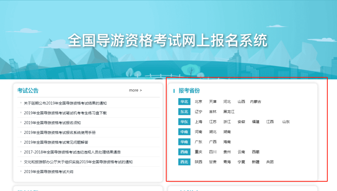 一、進(jìn)入該網(wǎng)站,點(diǎn)擊【全國(guó)導(dǎo)游資格考試報(bào)考入口】,選擇【所在省份】進(jìn)入