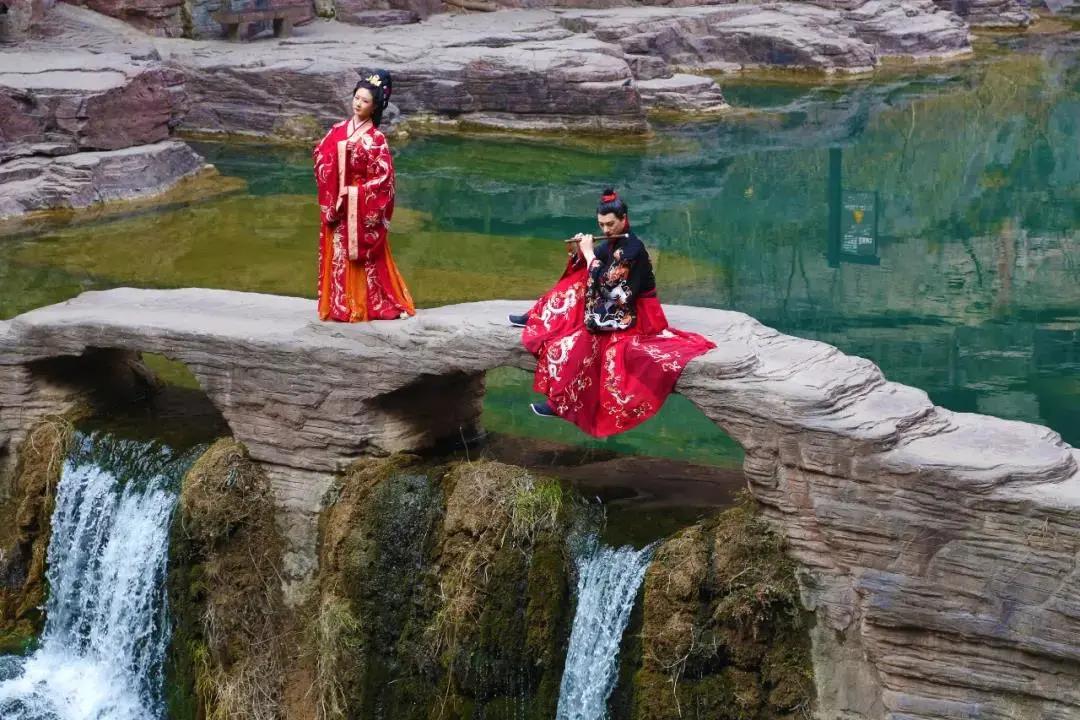高顏值漢服達(dá)人與云臺山水相映襯