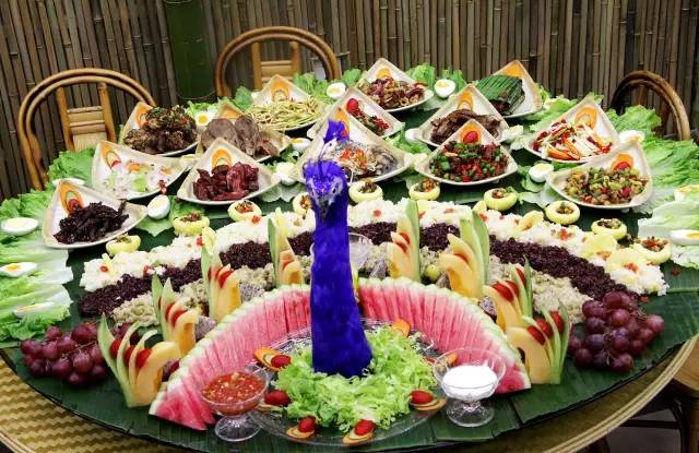 午餐享用較有特色的云南十大主題名宴之一西雙版納【孔雀宴】從原料選擇、烹飪制作,到造型擺盤、餐具搭配,每個細節(jié)都精巧細致,別出心裁。例如活靈活現(xiàn)的孔雀頭,形神兼具的孔雀尾,還有利用干冰營造出的仙云輕霧,讓本就美麗的孔雀更添仙氣兒,吃貨朋友們稱之為“瑤臺孔雀宴”。