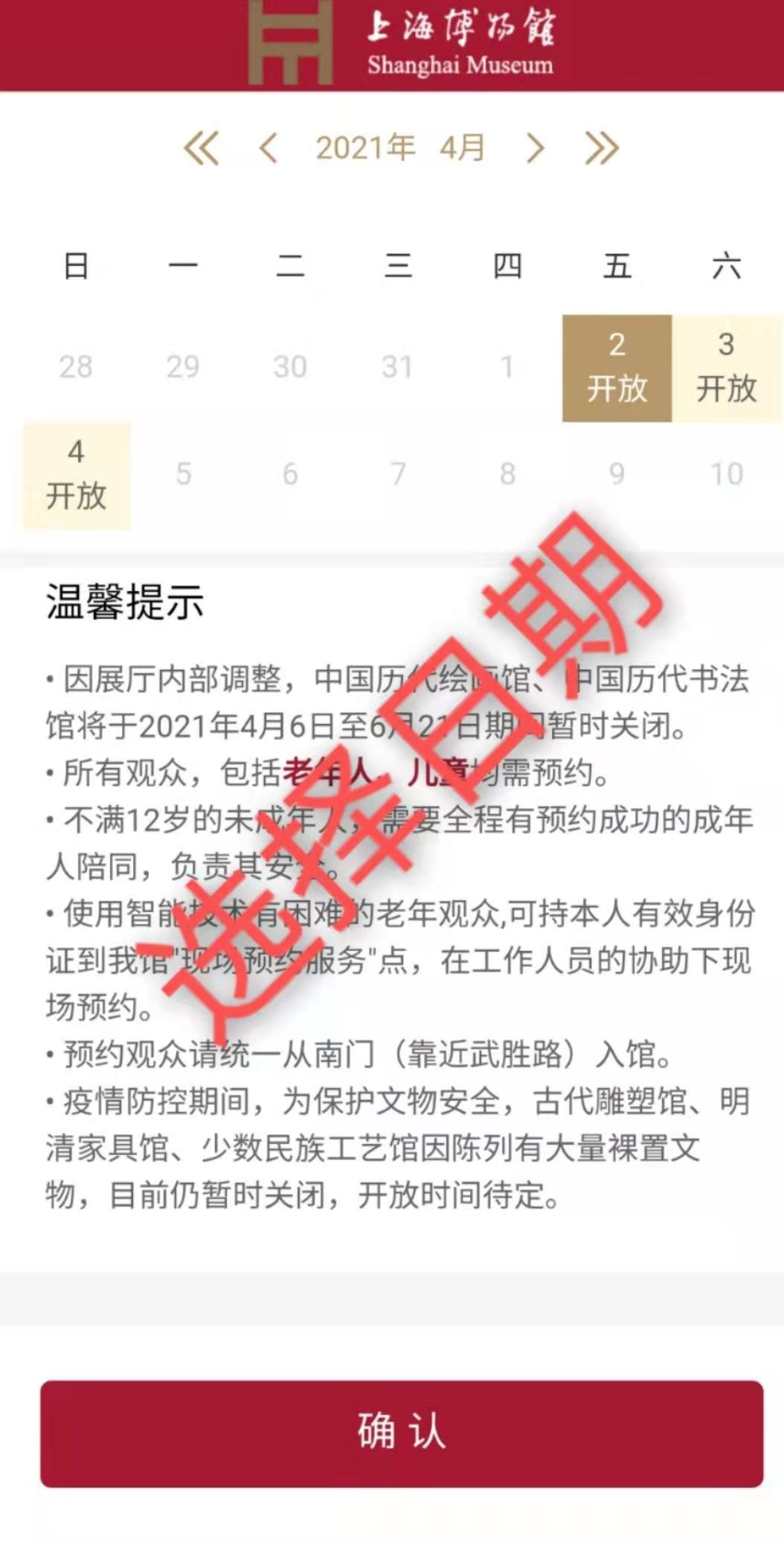 3.散客(個(gè)人)觀眾可提前3日(含當(dāng)天)通過(guò)上海博物館官網(wǎng)、微信公眾號(hào)預(yù)約。