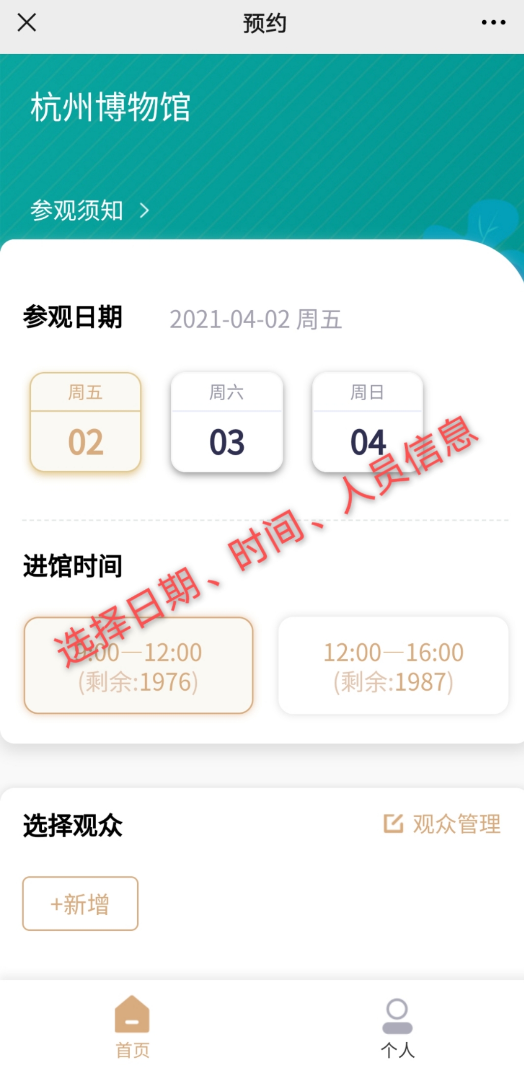 1.我館實行分時段實名預約參觀,觀眾進入“杭州博物館”微信公眾號,可提前3天預約。預約時段分為:9:00-12:00,可預約人次2000;12:00-16:00,可預約人次2000。
