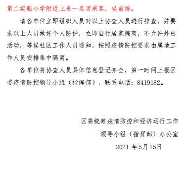 請各單位立即組織人員對以上協(xié)查人員進行調(diào)查 并要求以上人員做好個人防護,立即自行居家隔離