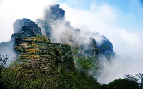 上午:乘車前往梵凈山。游覽武陵山脈主峰、中國(guó)五大佛教名山的 【梵凈山】 (不含梵凈山電瓶車 20 元/人,往 返索道 140 元/人,必須消費(fèi)敬請(qǐng)自理) (游覽不少于 4 小時(shí))、1986 年被列為國(guó)家級(jí)自然保護(hù)區(qū)、是聯(lián)合國(guó)“人與 生物圈”保護(hù)網(wǎng)成員,乘坐纜車接近山頂欣賞靈山奇石: 【翻天印,鳳求凰,萬(wàn)卷書,思過(guò)崖,九皇洞等】,一路尋 找黔金絲猴和鴿子花的身影,帶著虔誠(chéng)的心到 【承恩寺、燃燈殿,釋迦彌勒殿】祈福。面向佛山之核心— 【紅云金頂】:參悟現(xiàn)在,憧憬未來(lái)(登金頂山路陡峭,有一定的危險(xiǎn)性,請(qǐng)游客根據(jù)自身身體情況選擇),觀梵凈山的標(biāo)志景點(diǎn)— 【蘑菇石】。登上山頂,一覽眾山小,在云霧虛無(wú)縹緲之間,放空自我。
