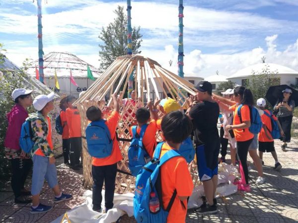 體驗(yàn)草原風(fēng)情:炫酷電瓶車、勒勒車。為了更好的體驗(yàn)蒙古族的牧民生活,分組團(tuán)隊(duì)協(xié)作搭建蒙古包,輔導(dǎo)老師作為評(píng)委,由當(dāng)?shù)啬撩裼H手教學(xué)。