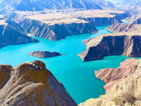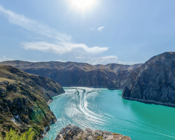 肯斯瓦特水庫位于瑪納斯河上游,距石河子60多公里。水庫大壩將瑪納斯河水匯集起來,形成一個高山湖泊,放眼四望,湖水蜿蜒于群山峻嶺之間,曲折環(huán)繞?見盡頭,河水純凈翠綠,平靜如鏡。登高望?,令人心曠神怡。
