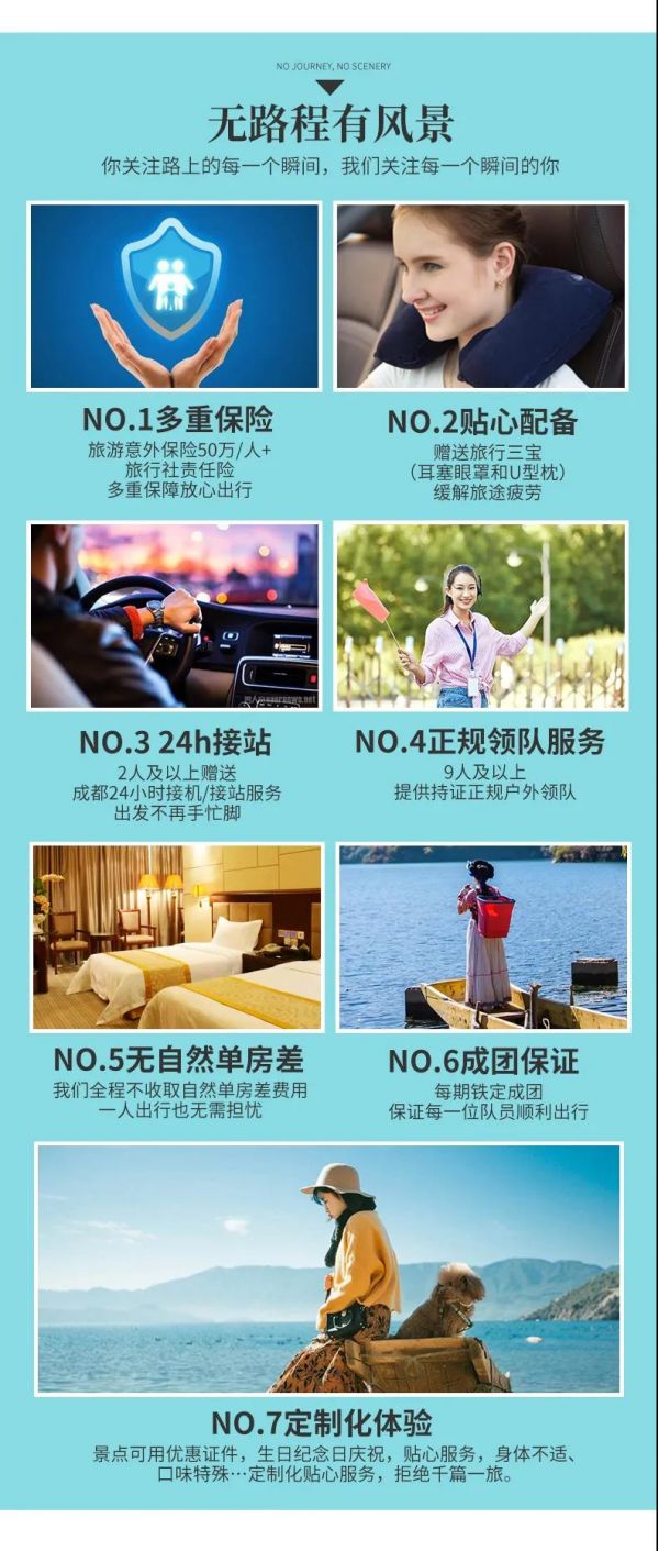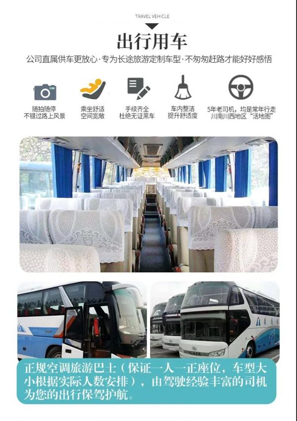 1、關(guān)于車(chē)輛交通:目前四川旅游市場(chǎng)8座以下車(chē)輛無(wú)法辦理旅游牌照,請(qǐng)游客知悉,以此理由提起的投訴我方拒不受理,望您諒解。