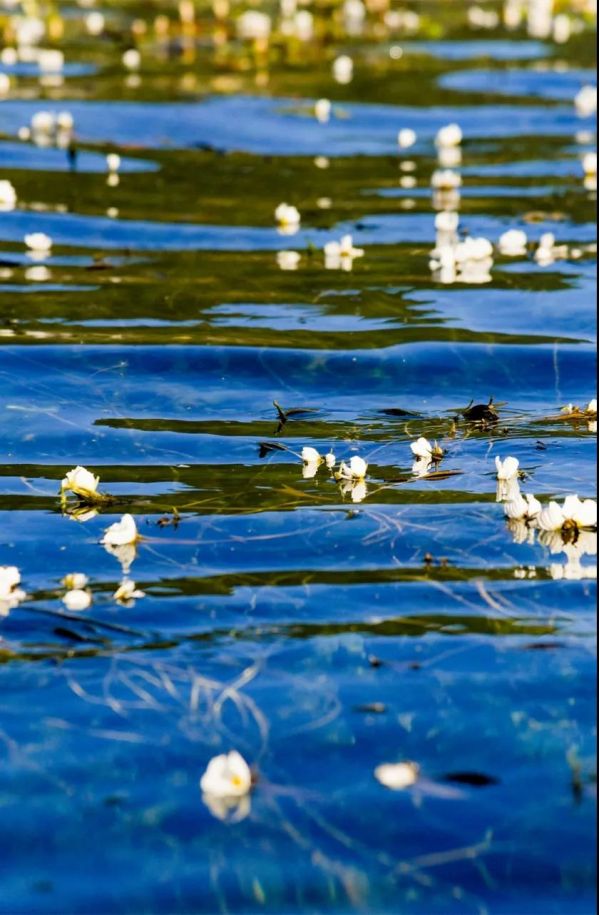 我們先登上【里格半島】,這個(gè)美麗的半島是瀘沽湖最具代表性的攝影圣地,這里有碧波如鏡的湖面,高空的白云和四周的山峰清晰地倒影水中,把湖山天影融為晶瑩的一體,微風(fēng)徐來(lái),湖面上便蕩起層層漣漪,給靜謐的瀘沽湖添上一份生機(jī)靈動(dòng)。然后我們來(lái)到島上的【情人灘】,灘邊上的樹(shù)都是成對(duì)生長(zhǎng)的,猶如情侶一般不離不棄地屹立在湖邊,情人灘的名字也由此而來(lái);情人灘還有著瀘沽湖聞名遐邇的一道風(fēng)景——【水性楊花】,一朵朵純潔的小白花星星點(diǎn)點(diǎn)零落分布,遠(yuǎn)看卻又聲勢(shì)浩當(dāng)?shù)摹鞍哉肌绷苏麄€(gè)湖面,細(xì)長(zhǎng)的花枝在水下隨波浪搖晃,那扭動(dòng)著的模樣像極了少女翩翩起舞,白色的花朵探出湛藍(lán)的天空和清澈的湖面,有如繁星掛滿夜空,美不勝收。