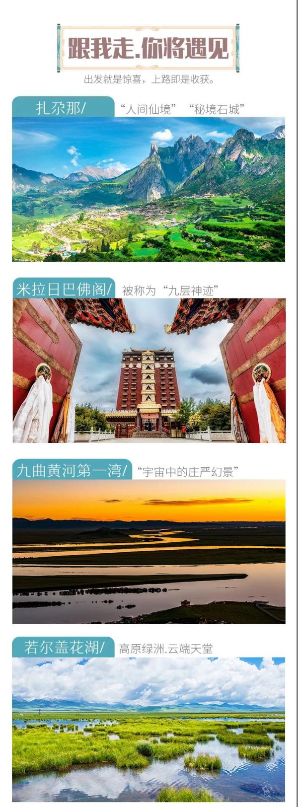 扎尕那+拉卜楞寺+若爾蓋花湖草原+米拉日巴佛閣+蓮寶葉則+郎木寺+尕海湖+九曲黃河第一灣日落+阿萬(wàn)倉(cāng)濕地