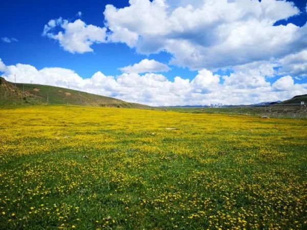 夏天,川西是活潑充滿生機(jī)的,草慢慢綠了,野花慢慢開了,蔚藍(lán)的天空……