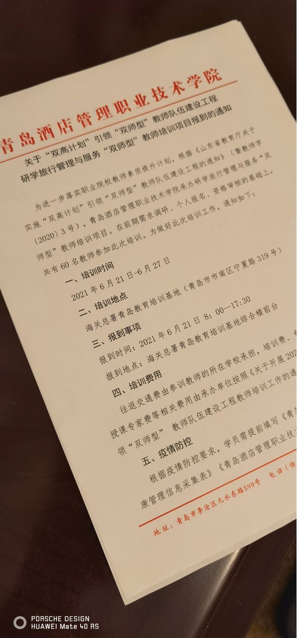 為進一步落實職業(yè)院校教師素質(zhì)提升計劃,根據(jù)《山東省教育廳關(guān)于實施“雙高計劃”引領(lǐng)“雙師型”教師隊伍建設(shè)工程的通知》(魯教師字【2020】3號),聊城職業(yè)技術(shù)學(xué)院骨干教師、學(xué)科帶頭人劉寶平參加青島酒店管理職業(yè)技術(shù)學(xué)院承辦研學(xué)旅行管理與服務(wù)“雙師型”教師培訓(xùn)項目,并擔(dān)任四組組長。