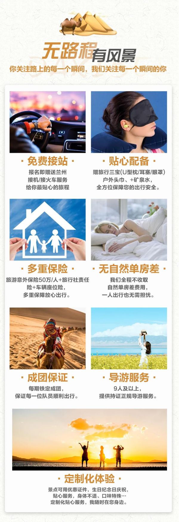 (5)贈送蘭州市區(qū)接機/接火車服務,23點后由于運管規(guī)定不能接機/接站,敬請諒解;