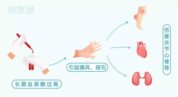 注意:有些患者沒(méi)有出現(xiàn)痛風(fēng),但也會(huì)引起心、腎損害等。
