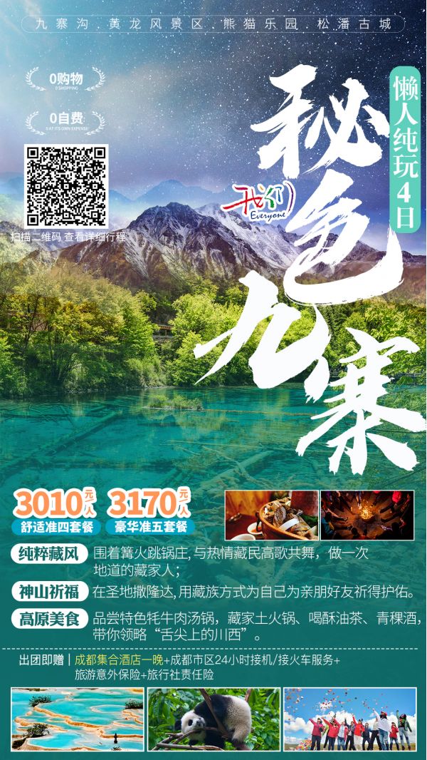 熊貓樂園+松潘古城+九寨溝+川主寺+黃龍