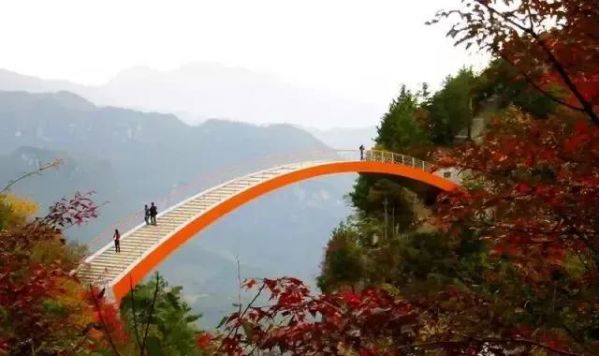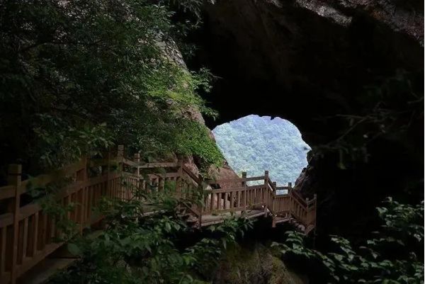 發(fā)源于老君山的黃巖河流經(jīng)此地,經(jīng)過(guò)億萬(wàn)年的流動(dòng)、溶蝕,形成一巖溶性天生穿洞,河水穿洞下瀉,呈現(xiàn)出‘天橋飛渡’。在這里有風(fēng)情萬(wàn)種的飛瀑,鬼斧神工的天然石橋,美麗的蘭花山,險(xiǎn)峻扼要的石壁棧道,組成了一幅絢麗多彩的山水畫卷。