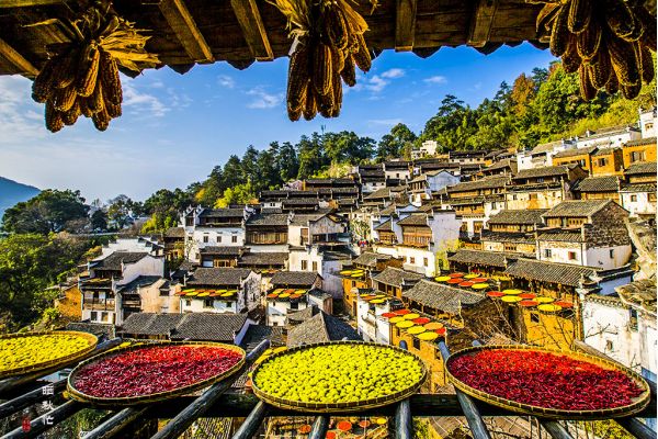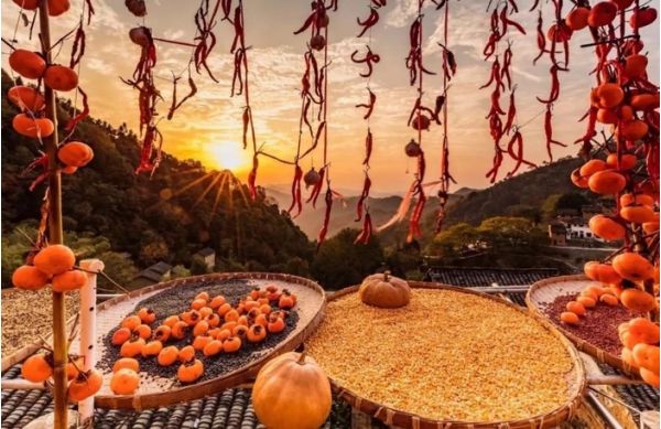 曬秋是一種典型的農(nóng)俗現(xiàn)象,具有極強(qiáng)的地域特色。在湖南、廣西、安徽、江西等生活在山區(qū)的村民,由于地勢復(fù)雜,村莊平地極少,只好利用房前屋后及自家窗臺屋頂架曬、掛曬農(nóng)作物,久而久之就演變成一種傳統(tǒng)農(nóng)俗現(xiàn)象。