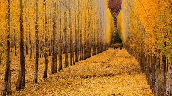 然后我們會車觀一條極為小眾的秘境長廊——【冷龍嶺秋色長廊】,我們已經(jīng)見識過沙漠與胡楊林交接的壯美,但卻不知秋季的白樺林也美得不可方物。每至9-10月的秋季,長達(dá)80里的冷龍嶺就會變成層林盡染的金色白楊白樺長廊,穿行其中,視野開闊,兩道皆是白樺林,碩果搖金,層林盡染,繁華似錦,牛羊間或鑲嵌其間,猶如一幅絢爛的油畫。