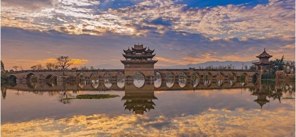 隨后游覽清乾隆年間的【雙龍橋】,雙龍橋是一座三閣十七孔大石拱橋,橫亙于南盤江支流的滬江河,因兩河猶如雙龍蜿蜒盤曲而得名;是國家地理雜志云南非常理想的拍攝點(diǎn)之一。