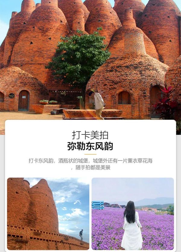 后前往彌勒,游覽【東風(fēng)韻】(含電瓶車),被稱為東方波爾多,萬畝碧綠的葡萄園,夢幻無際的紫色薰衣草,醉了每一個(gè)走進(jìn)東風(fēng)韻的人,順著中國最大的的紅磚建筑群萬花筒藝術(shù)莊園,一路走來,藝術(shù)的熏陶和美麗的風(fēng)景融為一體,讓您感受難得的東風(fēng)韻。游覽結(jié)束后入住石林溫泉酒店,體驗(yàn)溫泉給身心的放松。