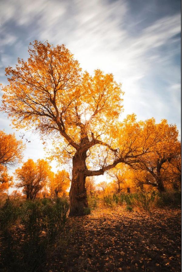 大漠駝鈴從古時傳來,在土地上發(fā)出厚重的回聲胡楊林靜默地散發(fā)力量。 深秋,就應該去看最蒼茫、最絢爛的顏色看最美艷、最古老的胡楊。