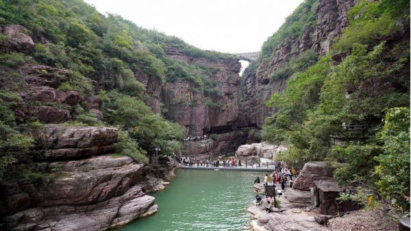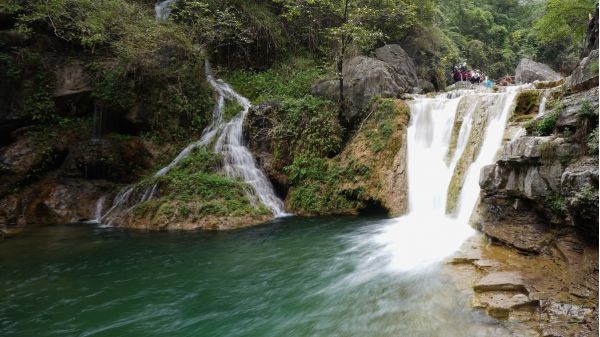餐后前往云臺(tái)山,登山游覽小寨溝方向。小寨溝相傳為隋末農(nóng)民起義英雄劉武周和唐太宗李世民安營扎寨之地。谷底巨石矗立,溪流涓涓;三步一泉,五步一瀑,十步一潭,被譽(yù)為“潭瀑川”。溝內(nèi)冬春溫和,夏秋涼爽,又稱“長春溝”。最為壯觀的為丫瀑潭,瀑高20余米,上下相連,形成一個(gè)“丫”字形,瀑下積水成潭,翡翠碧綠,面積百余平方米,潭周圍有大片開闊地,可供游憩。