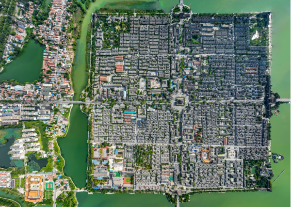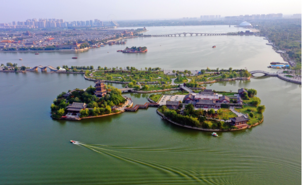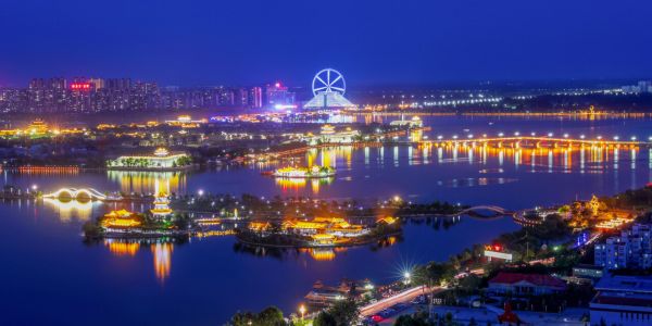 東昌湖始建于宋熙寧三年(公元1070年),在原護(hù)城河的基礎(chǔ)上經(jīng)歷代開挖而成,現(xiàn)有水域4.2平方公里,為中華人民共和國江北地區(qū)罕見的大型城內(nèi)湖泊。東昌湖引黃河水為源,常年水深3-5米,湖水清澈,無任何工業(yè)污染;景色宜人,令游客流連忘返。東昌湖中心是已有千年歷史的1平方公里的正方形聊城古城。古城風(fēng)貌保存完好,以古城正中的光岳樓為中心,向四面輻射,形成東西南北四條古城區(qū)干道,其它大街小巷,也都是經(jīng)緯分明,垂直交叉,形成棋盤方格網(wǎng)狀骨架。古城區(qū)民居,至今保留著白墻、灰瓦、城屋頂?shù)膫鹘y(tǒng)建筑風(fēng)格。古老的京杭運(yùn)河兩岸,街巷布列,各種店鋪民居,隨坡就勢,依河而建。條石鋪砌的大小碼頭,株株蒼勁的古槐,以及宋代隆興寺鐵塔,國家重點(diǎn)文物、清代建筑山陜會館,仍會使人們體味到昔日運(yùn)河漕運(yùn)鼎盛時期古聊城的繁榮和輝煌。通過有效地開發(fā)和利用這些得天獨(dú)厚的旅游資源,形成了東昌湖風(fēng)景名勝區(qū)的重要內(nèi)容——湖濱風(fēng)景區(qū)、古城文化區(qū)和運(yùn)河風(fēng)情區(qū)。