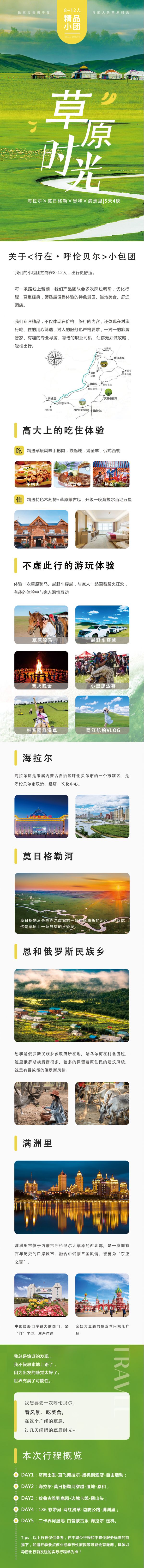 產品一價全包,0自費 0購物,沒有暗店、景中店的一款高端產品;餐標是40元/人,含一餐100/人均標準的羊腿/羊排。住宿是海拉爾攜程四鉆,恩和木刻楞,黑山頭星空觀景包,滿洲里套娃城堡酒店含套娃廣場+大馬戲表演