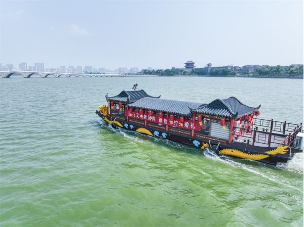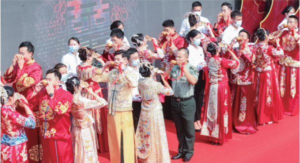 8月4日,農(nóng)歷七月初七,是我國(guó)傳統(tǒng)節(jié)日七夕節(jié),一場(chǎng)以“七夕情定東昌湖 文明花開新聊城”為主題的中式集體婚禮在東昌湖畔舉行,10對(duì)新人用隆重?zé)崃?、?jiǎn)樸溫馨的集體婚禮,升華了他們的美好愛情。此次集體婚禮由山東省婦聯(lián)指導(dǎo),聊城市婦聯(lián)、東昌府區(qū)委區(qū)政府、東昌府區(qū)婦聯(lián)主辦。