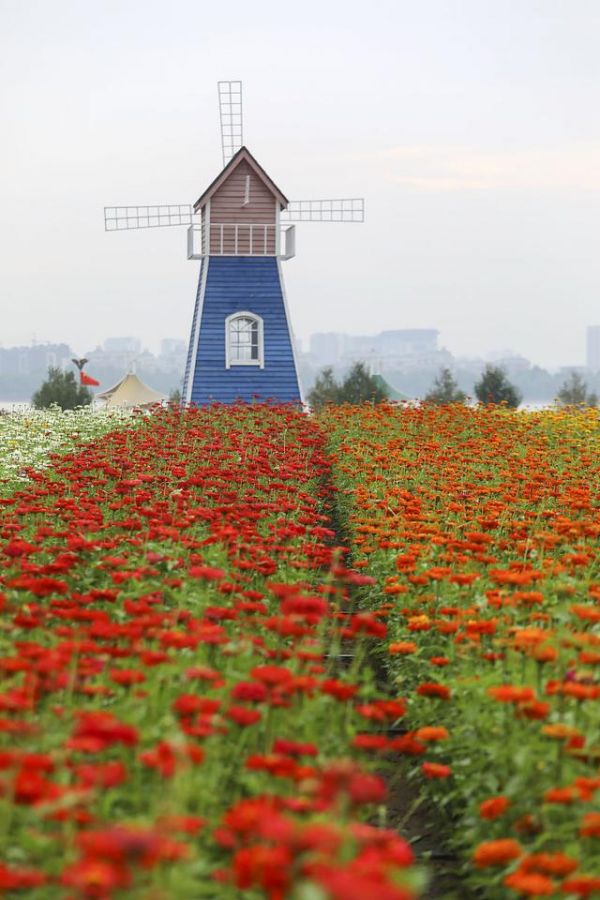 在市區(qū)廣場或公園里,也可以隨處遇到五顏六色的步步高(百日草)花海,五彩斑斕,蕩人心魄。一叢叢不同顏色地盛開在一起,宛如海洋一般浩大,五彩繽紛的色彩點綴其間,營造出來的美感壯觀讓人震撼。
