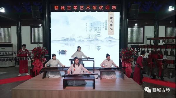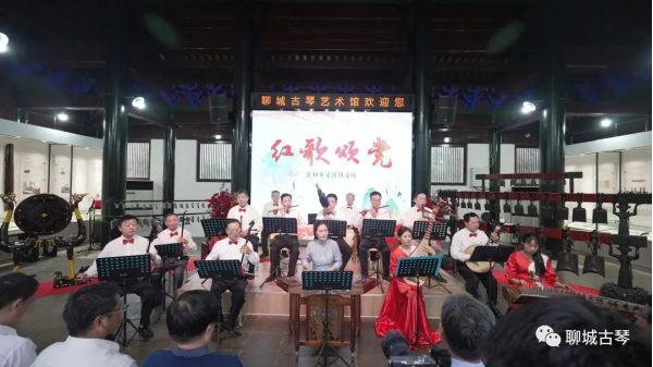 揭牌儀式后,各位領(lǐng)導(dǎo)和與會嘉賓一同觀看了由古琴學(xué)會-至和雅樂團精心編排演繹的節(jié)目:鐘磬樂《云水禪心》,小合唱《春風(fēng)十萬里》,器樂合奏《紅歌頌黨》。