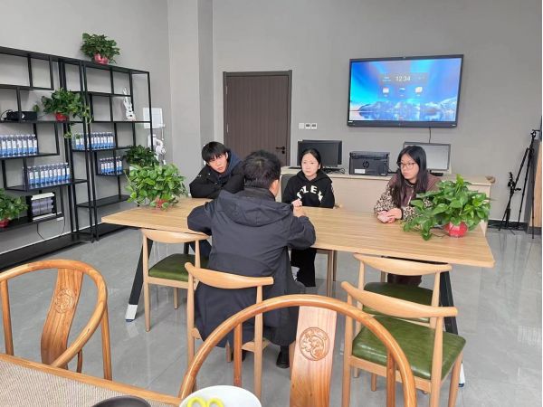 3:30我們陸續(xù)來到實訓室,苗苗在做PPT,下午4:00,劉老師來到了實訓室,我們用大屏幕給李鑫諾把英語放到屏幕上,李鑫諾開始翻譯,劉老師把鑫諾不會的都一一解答出來。然后楊倚晴和李鑫諾先去吃飯了。苗苗和唐靜雯在談話。